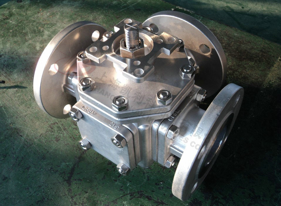 Q44H/Y,Q45H/Y硬密封三通球閥有T型和L型。T型能使三條正交的管道相互聯(lián)通和切斷第三條通道,起分流、合流作用。L型只能連接相互正交的兩條管道,不能同時保持第三條管道的相互連通,只起分配作用。